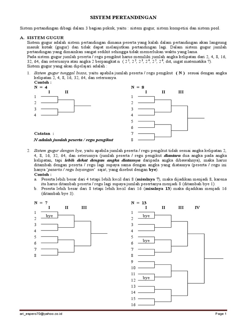 5 Sistem Pertandingan Bola Basket from i0.wp.com Sistem kompetisi adalah sistem pertandingan yang biasanya dipakai dalam. Misalnya sebuah kejuaraan pertandingan sepak bola diikuti oleh 16 peserta. Sebagai contoh, jika peserta pertandingan sebanyak 10 tim, maka setiap tim akan bertanding sebanyak sembilan kali dalam sistem setengah kompetisi. Dukung tim anda untuk menang dan ikuti perkembangan turnamen dengan templat bagan turnamen ini. Nah, pada kesempatan ini saya akan berbagi info tentang sebuah aplikasi pembuat stuktur pertandingan otomatis yaitu (tournament bracket builder). Dengan memasukkan jumlah peserta sebuah turnament lalu klik ok struktur pertandingan langsung jadi secara otomatis. Jumlah pertandingan pada system pertandingan setengah kompetisi disusun dengan rumus sebagai berikut : Membuat tabel klasemen sistem setengah kompetisi.